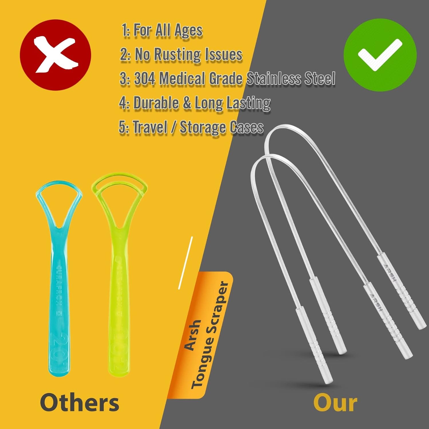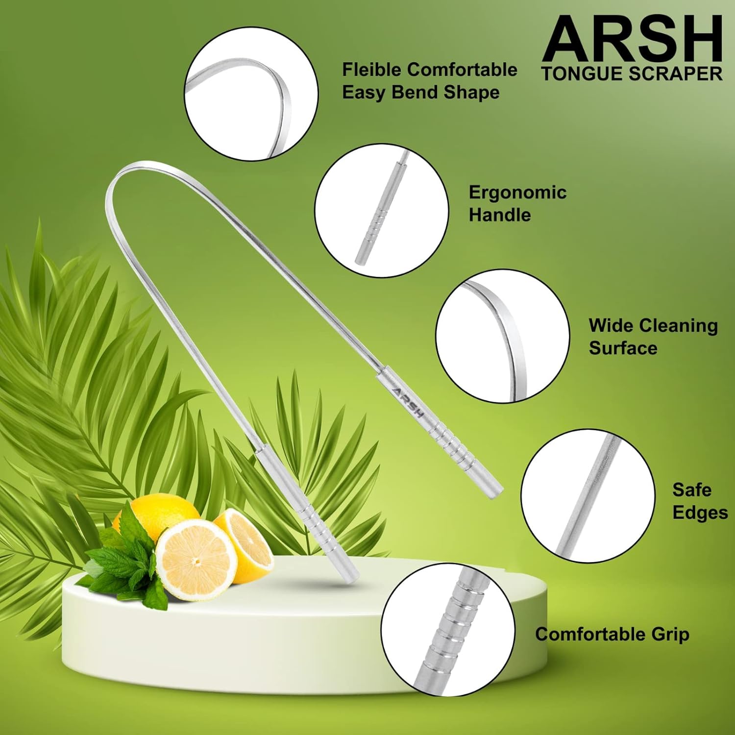 # Arsh tongue scraper metal may help you to reduce bad breath and you feel fresh every time. Benefits of scraping your tongue with this Tongue Scrapers for Adults fresh breath for improved confidence and better overall health.
