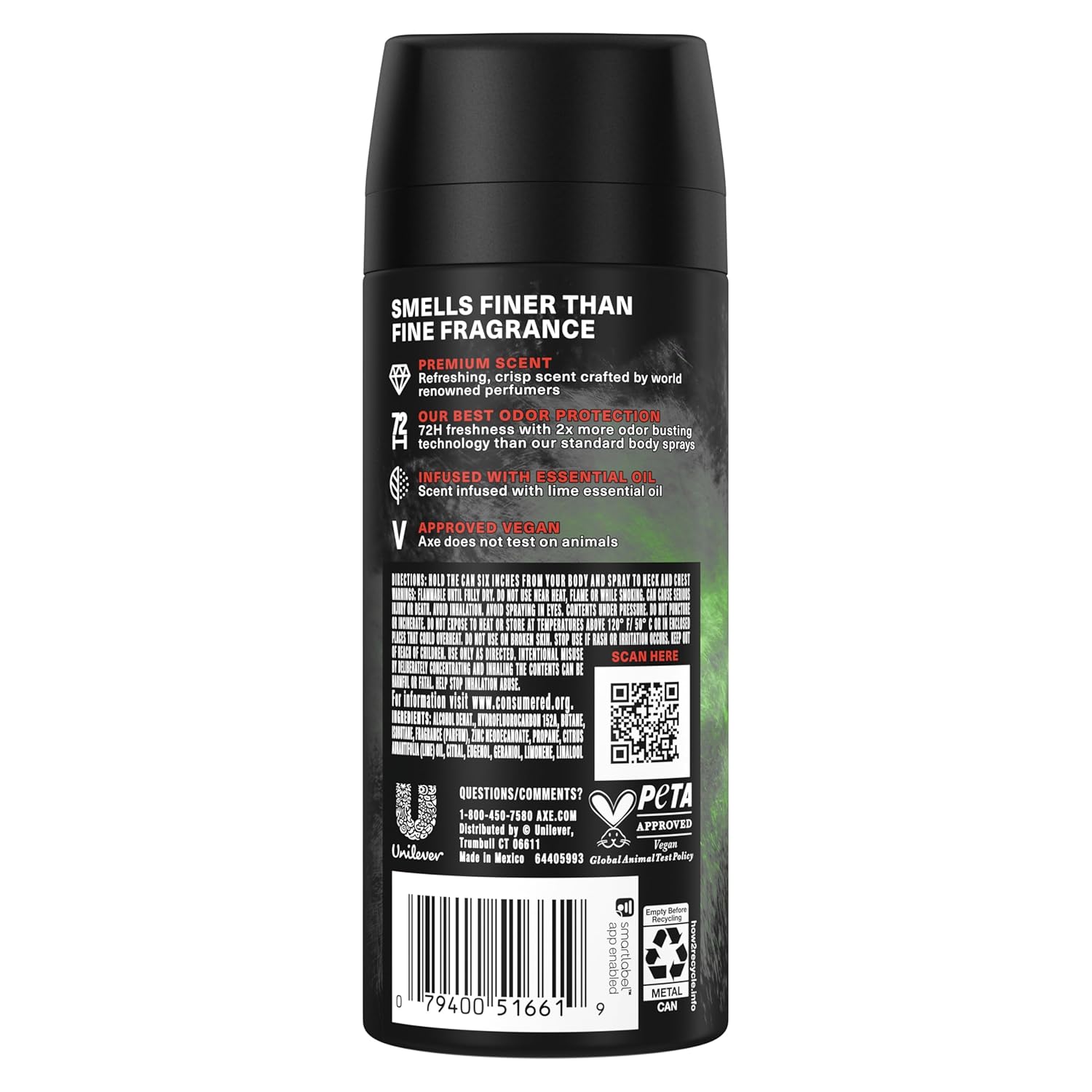 Smell finer than fine fragrances with the AXE Fine Fragrance Collection. Our world-renowned perfumers have crafted the Watermelon Freeze Premium Body Spray with an refreshing, crisp fragrance infused with sage and lime essential oil. Everyone deserves a hype man, so we made one in fragrance form. In just a few spritzes of this spray, you’ll get freshness and unbeatable confidence. AXE Fine Fragrance premium body sprays are formulated with 2x zinc zap technology (compared to our other body sprays), neutralizing odor and keeping you smelling fresh for 72 hours. Yep—that’s right. We’re out here working smarter, not harder. This body spray is formulated with an aluminum-free formula that hits different, is easy on the skin, tough on odor, and is instantly refreshing. We know, we know—we really thought of everything. That’s the AXE effect. IYK, YK. How to use: Apply your favorite AXE deodorant to your underarms in the morning, and touch up with AXE Fine Fragrance body spray as needed throughout the day. Twist the top to reveal the nozzle. Hold the can six inches from your body and spray to neck and chest.
