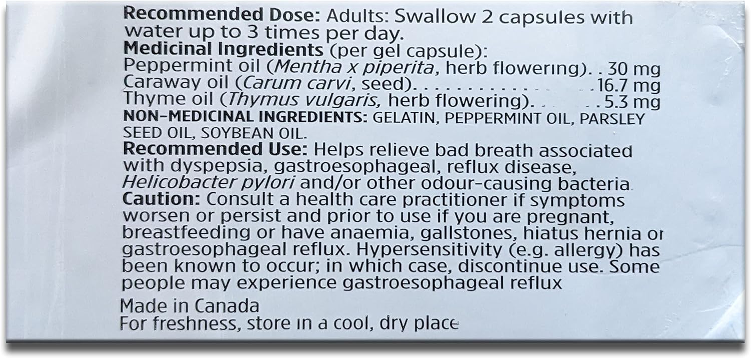 Breath Mate also supports the trend for cleaner product ingredient labels and natural product options. It is All Natural, Sugar Free, Gluten Free, & Dye Free. It uniquely controls odor causing bacteria from inside the digestive track of the body providing long-lasting effectiveness. Breath Mate has more of the active ingredient Peppermint Oil (30 mg ) than any other breath freshener on line ONLY Breath Mate has the additional medicinal ingredients of Caraway Oil 16.7 mg and Thyme Oil 5.3 mg Breath Mate is proudly manufactured in North America.