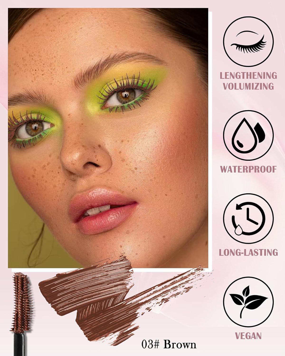 Brown Waterproof Mascara, Lash Extension Mascara with Dual-Sided Brush, Great for Lengthening and Volumizing Eyelashes, No Clumping Tube Máscara Volume and Length, Long Wear, Smudge-Proof-03