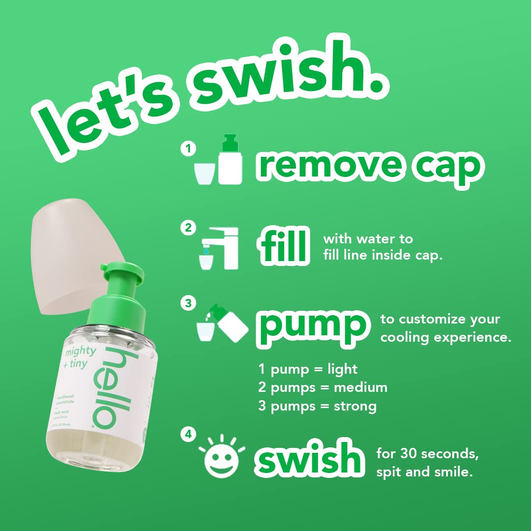 1) Fill with water to fill line inside cap 2) Pump to customize your flavor experience: 1 pump = light, 2 pumps = medium, 3 pumps = strong 3) Swish for 30 seconds, spit, and smile