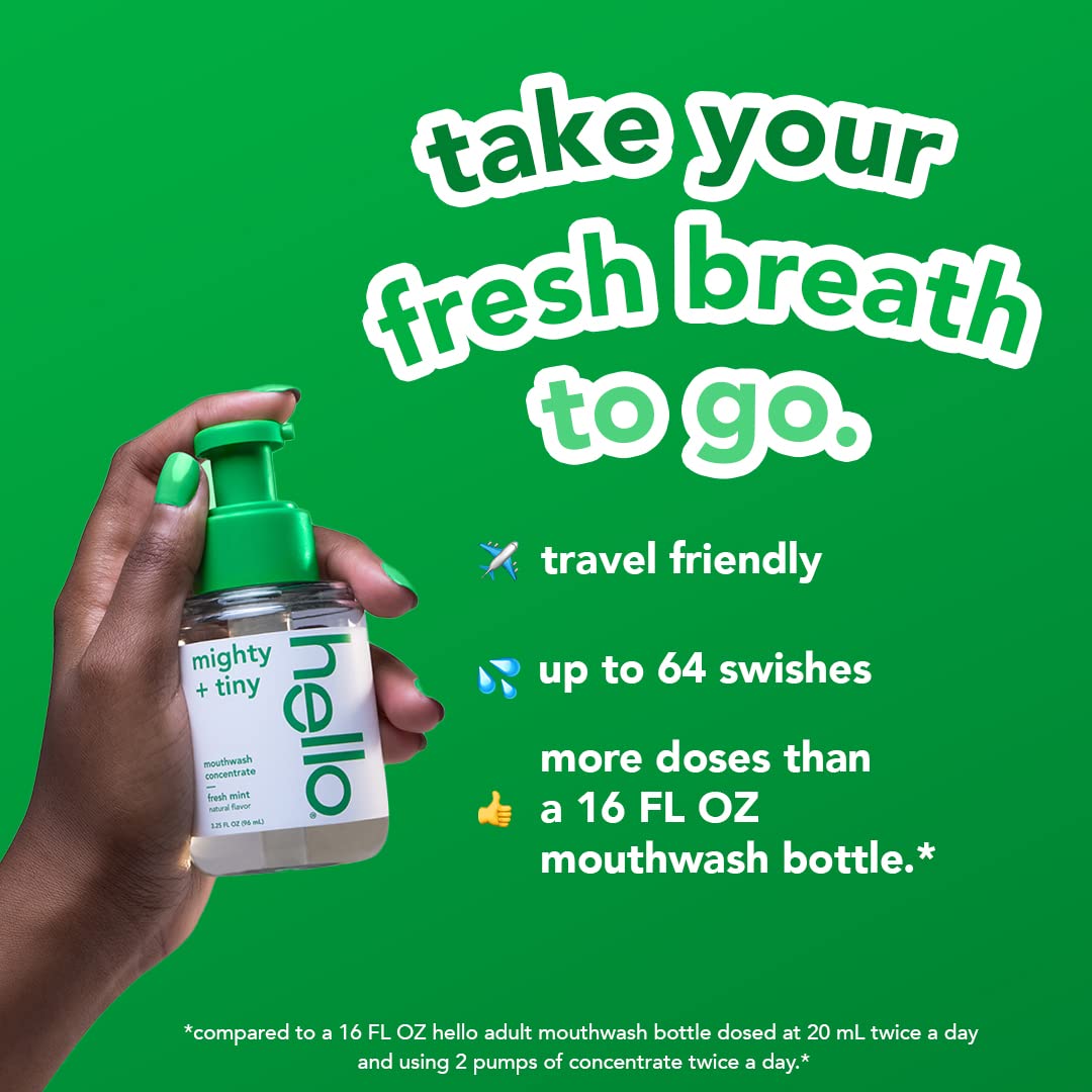 Includes two (2) 3.25 oz. pump bottles of Hello Fresh Mint Concentrate Mouthwash, Travel Size Mouthwash for Bad Breath