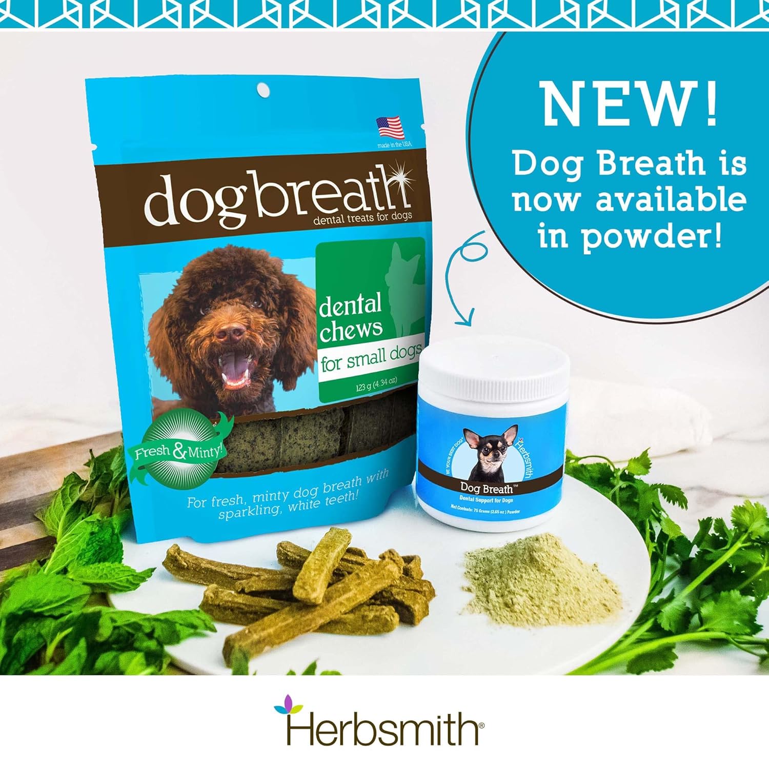 Herbsmith Dog Breath – Dog Dental Care Solution – Natural Dog Breath Freshener That Tackles Tartar – Dental Powder for Dogs – 75g Powder