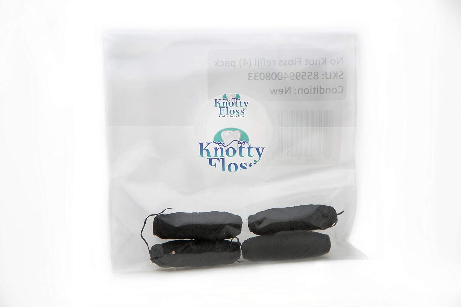 Knotty Floss Refills of Bamboo Activated Charcoal No Knot Floss with Grapefruit Seed Extract – Eco-friendly Vegan – 4 Refill Packs