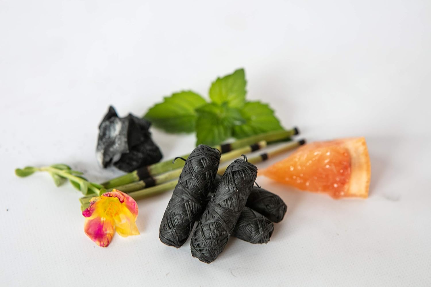ECO-FRIENDLY BAMBOO CHARCOAL FLOSS: Made from bamboo charcoal polyester, grapefruit seed extract, candelilla wax, mint oil, and nothing more. *Biodegradable yes! Bamboo charcoal polyester produced with Reverte certified biodegradable..