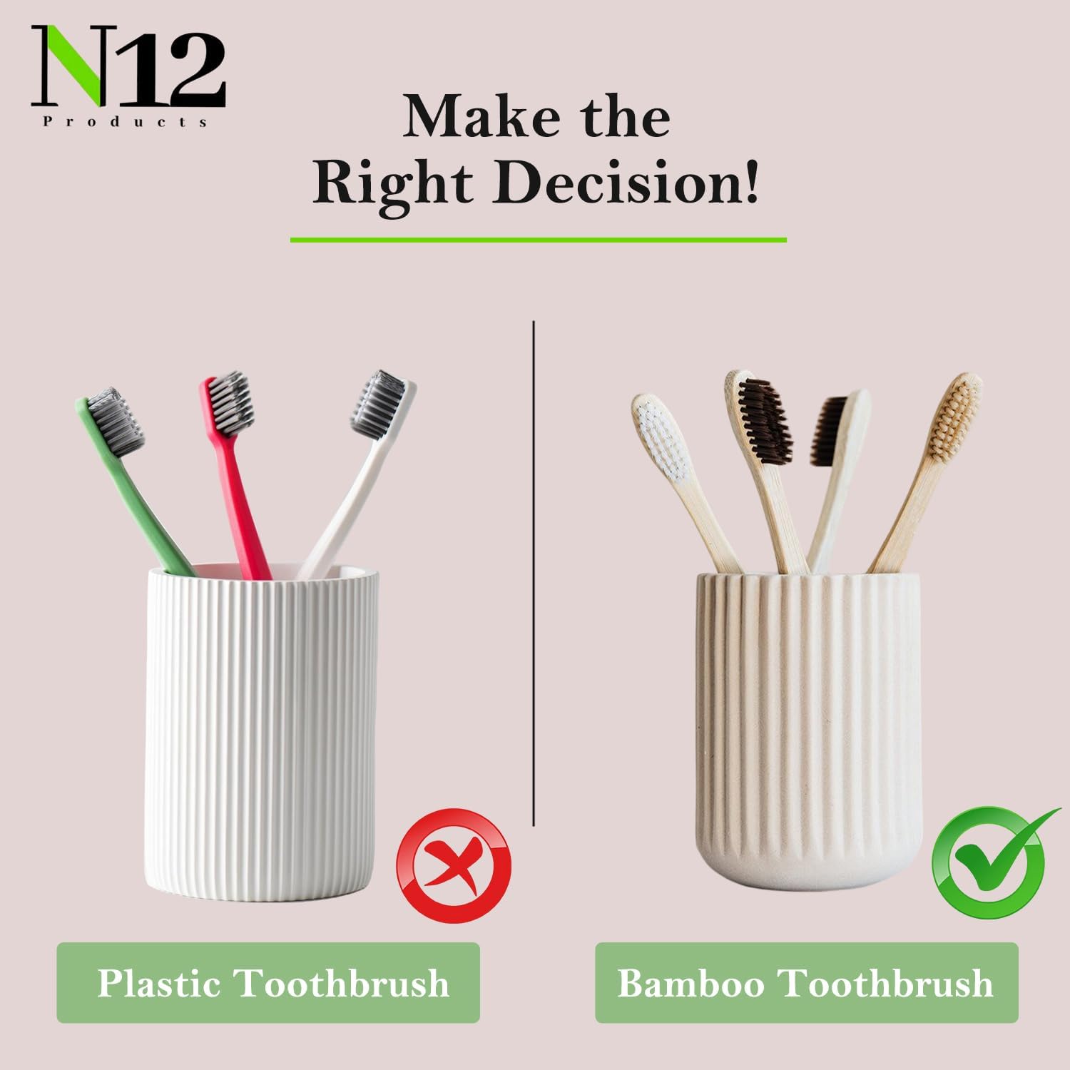 N12 Biodegradable Pack of 10 Bamboo Toothbrushes – Multicolored Charcoal BPA-Free Soft Bristol, Eco-Friendly, Sustainable Reusable Travel Tooth Brush