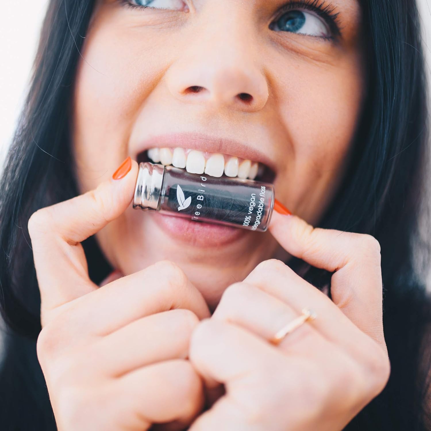TreeBird’s floss works just like traditional floss, only it’s safer for the earth. Simply wrap the desired amount around your fingers, and gently glide the clean sections in an up and down motion between your teeth and around the gums (remember not to saw!). Our natural silk and activated bamboo charcoal flosses are packaged in reusable glass containers, which you can save for future TreeBird floss refills. Opt for silk for a more delicate sensation or charcoal for a deeper, more durable clean. Floss your way to a better earth!