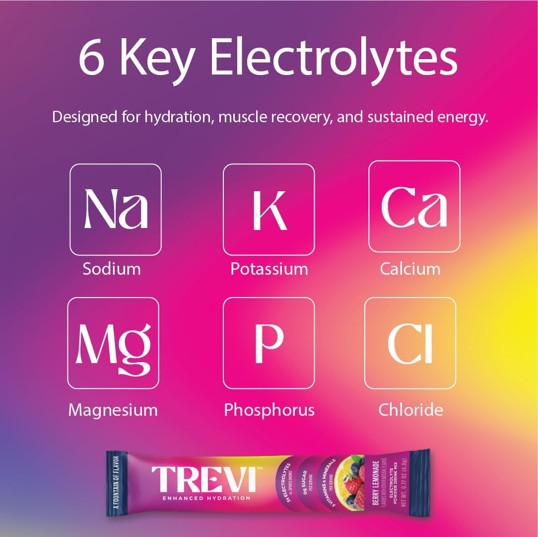 8 reviews for TREVI™ Electrolytes Powder Packets – Sugar Free Hydration Drink Mix Rehydrate Daily Electrolyte Replenisher Hydrates Himalayan Pink Salt Vitamins Trace Minerals No Artificial Dye 28 Ct Berry Lemonade